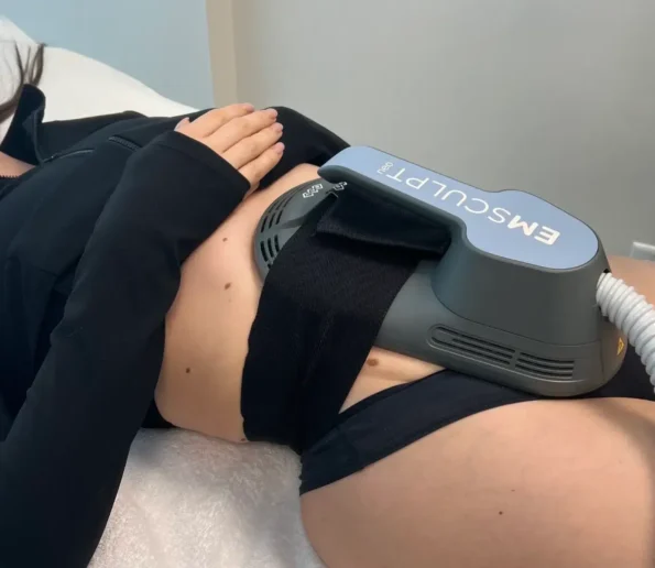 EMSCULPT is a non-invasive body contouring treatment that uses high-intensity focused electromagnetic (HIFEM) technology to build muscle and burn fat. It works by causing intense muscle contractions, leading to muscle growth and fat cell breakdown. The treatment is typically done in 30-minute sessions, and a course of treatments is usually recommended.